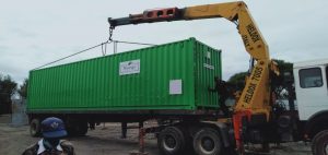 The mobile factory arriving in Kenya.