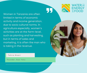 WE4F Innovator Kazi Yetu aims to build local value chains in Tanzania and support women in agriculture and processing. They promote the advancement of women by paying premium prices to the farmers that supply them and by working with them to expand their operations through technical investments. Kazi Yetu also encourages women in production and 22 of their current 26 employees are women. They work with these employees to train them for leadership positions and increase their confidence in the workplace.
