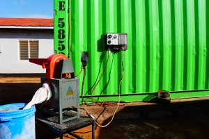 After a day and a half of assembly, the technicians were finally ready to flip the switch. Miyonga installed a solar 1.8 kW generator of on top of their 40-foot mobile factory, which holds a solar dryer, ambulant ventilators, and processing equipment. Also, attached is a battery bank, ensuring climate-friendly food processing even on cloudy days or after sunset. The 1.3 kW mill comes from the Kenyan company, Agsol, a manufacturer specialized in producing solar-powered mills. The solar mill and the dryer work hand-in-hand and form an integral part of the mobile food processing factory.