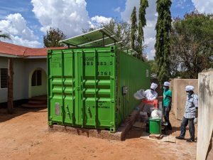 Solar panels at the top of Miyonga’s mobile factory