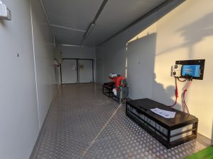 Inside the mobile factory: processing spaces with the battery bank and storage for the mill leading to the drying chamber