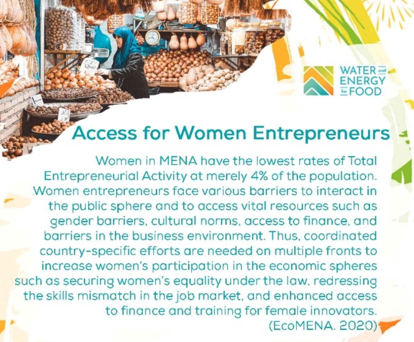 As climate change worsens and its effects become more and more visible, smallholder farmers in the Middle East and North Africa face impacts on the amount of food they can produce, the scarce water resources they can access, and the current energy systems on which they rely for power. To help scale water-energy-food solutions in the region, there is a growing push to support start-ups and invest in businesses. For instance, the WE4F MENA Regional Innovation Hub supports companies by bringing them into the program and providing grants, technical assistance, and investment facilitation. The MENA RIH also works with them and other regional partners to improve the enabling environment for businesses.