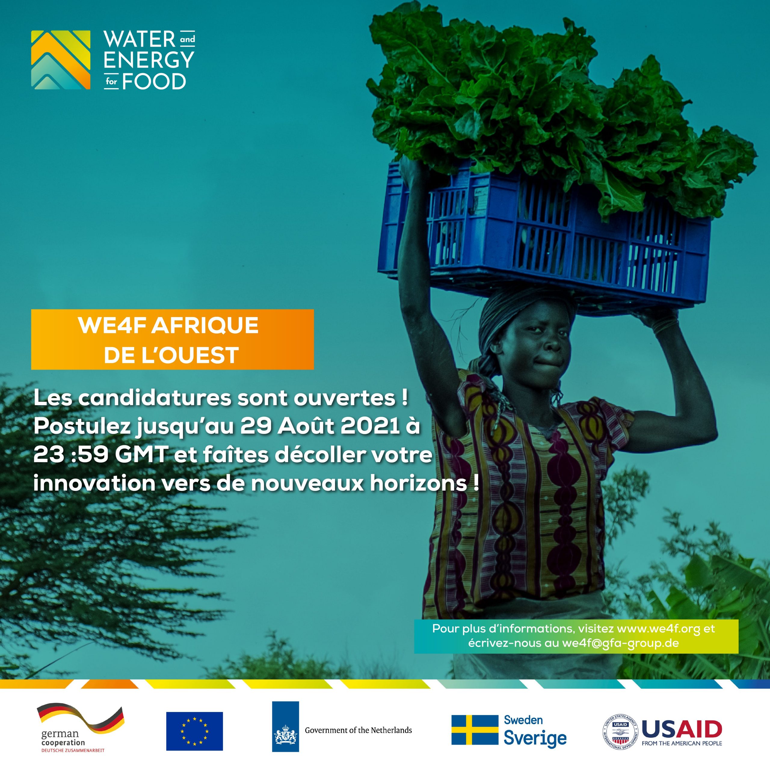 Le formulaire de candidature est disponible à partir de maintenant jusqu’au 29 août, 23h59 GMT sur : https://we4fwestafrica.obrains.ci/en/home/.