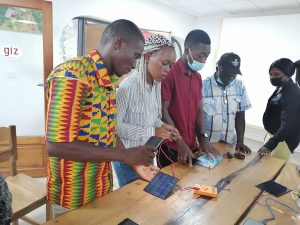 Afin de rendre ces sessions d’apprentissage dynamiques, la formation des apprenants s’est déroulée en deux partie. Tout d’abord, ils ont reçu une formation théorique dans leurs lycées respectifs. Ensuite, ils se sont rendus sur le terrain pour une formation pratique sur les installations mises en place dans le cadre d’une coopération entre WE4F et l’ONG Energy4Impact afin de mieux comprendre la réalité du terrain.
