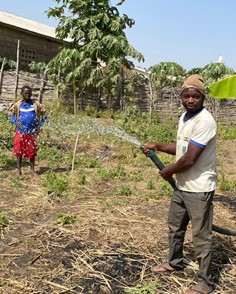 Arrosage du site de démonstration de la coopérative Komorado située dans la commune de Banikoara (Nord du Bénin).